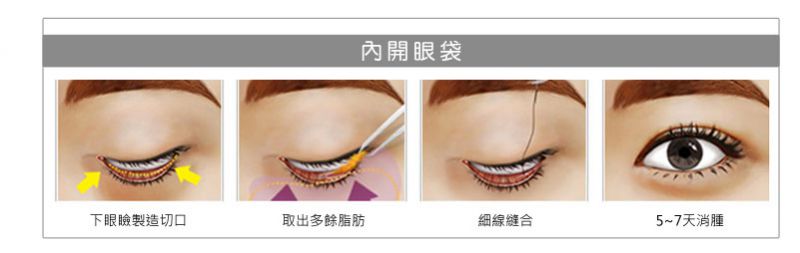但由于内开式手术复原期较短,伤口较不易肿胀,但由于手术是由下眼睑入刀,因此医师的缝合技术与专业性就显得格外重要。